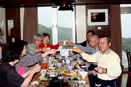 | 夜の食事はまず乾杯 |